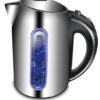 Elevate your kitchen with this 1.7L cordless electric kettle, blending modern aesthetics with practical functionality. Crafted from durable borosilicate glass and accented with stainless steel, it offers both elegance and resilience. The built-in blue LED indicator light illuminates during boiling, providing a visual cue and adding a touch of sophistication to your countertop. Equipped with a concealed heating element, it ensures rapid boiling and easy cleaning. Safety features include automatic shut-off and boil-dry protection, giving you peace of mind with every use. The 360° rotational base allows for convenient handling, making it ideal for both left and right-handed users. Whether you’re preparing tea, coffee, or instant meals, this kettle combines style and efficiency to meet your daily needs.